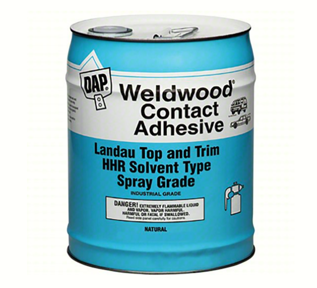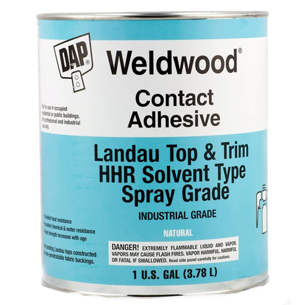A spray-grade contact adhesive specially developed to meet the requirements of the automotive refurbishing business. Has excellent application properties and forms a high strength, high heat resistant bond that is resistant to water, many household chemicals and the effects of aging. It may be used to bond cloth, leather, laminates, wood veneers, upholstery, carpeting, headliners and many similar materials, to metal, rigid polyurethane foam, and fiberboard in automobile restoration and customizing.